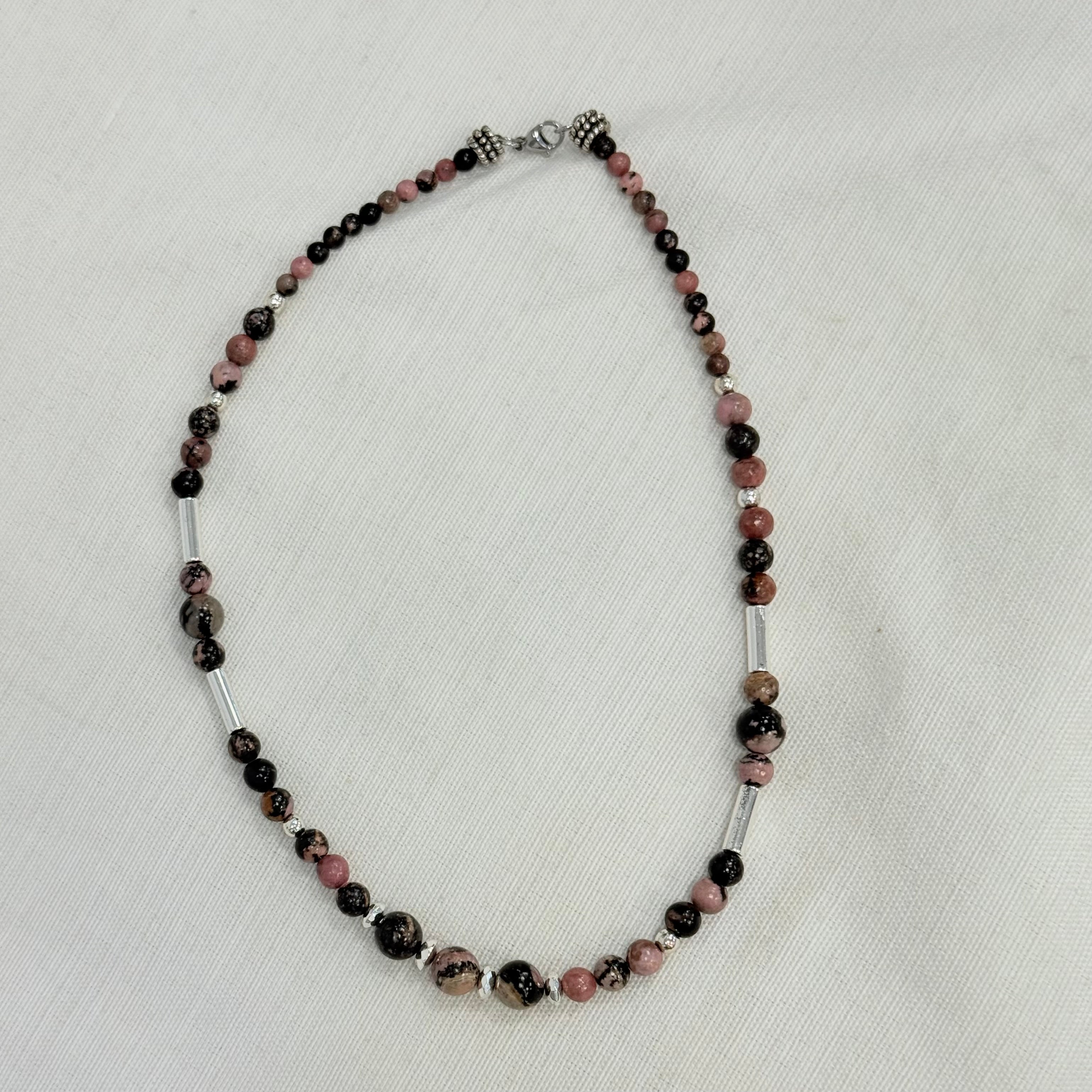 This delicate Rhodonite necklace, handcrafted with care, combines simple elegance with spear feature. Known as the “Stone of Compassion,” Rhodonite promotes emotional healing, self-love, and balance. Whether worn daily or for special moments, this choker offers both style and a meaningful connection to healing energy.