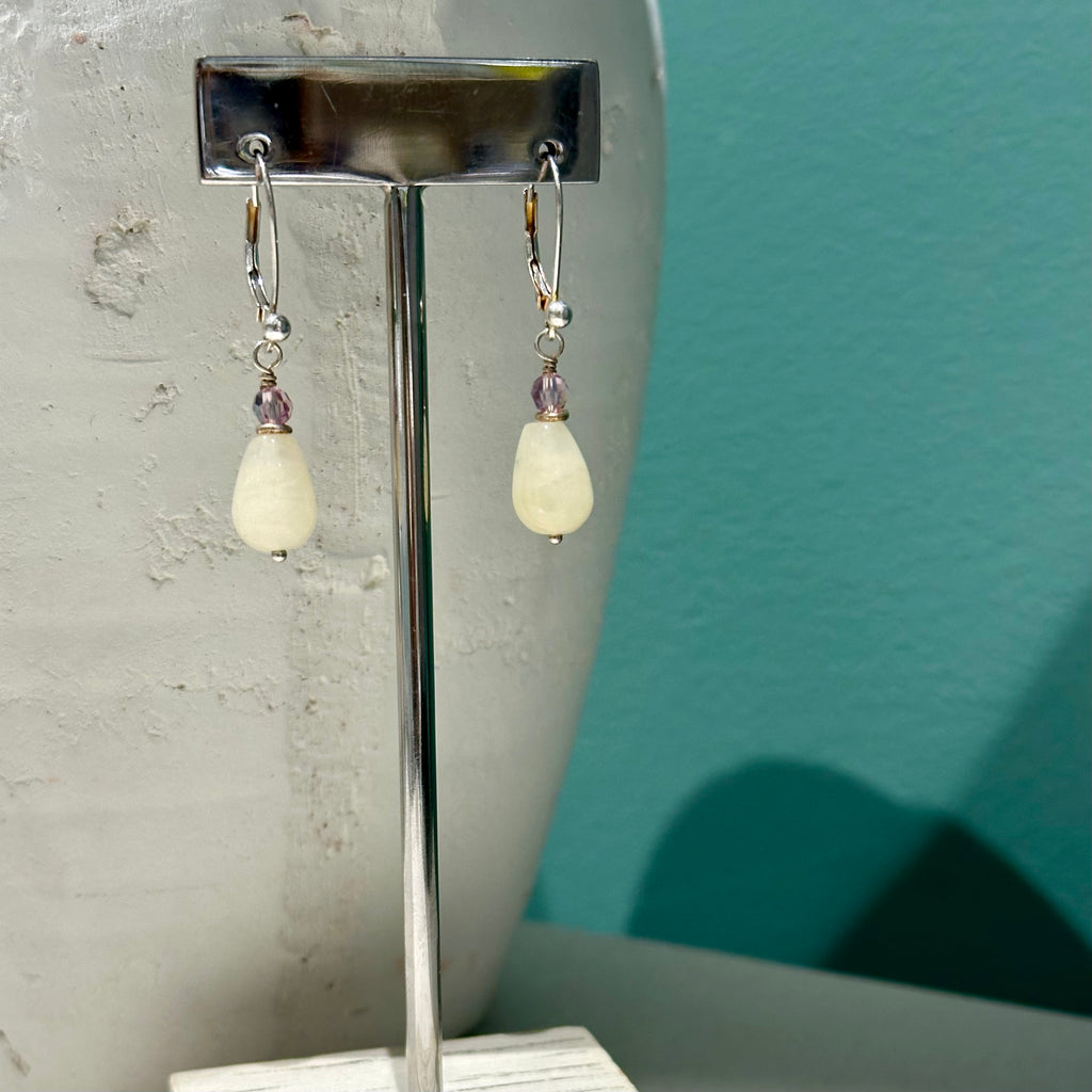 Materials: Sterling Silver lever-back, yellow jade gemstone.