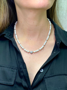 Materials: Shell pearls, 14k gold filled clasp and chain, sparkled heart made with rhodium material.